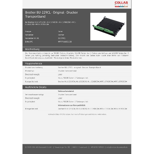 Jetzt anmeldenProduktinformationen "Brother BU-229CL - Original - Drucker Transportband"