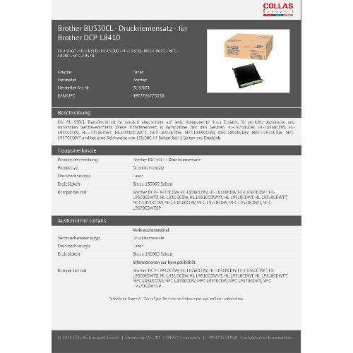 Jetzt anmeldenProduktinformationen "Brother BU330CL - Druckriemensatz - für Brother DCP-L8410"