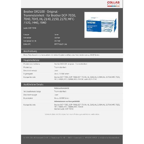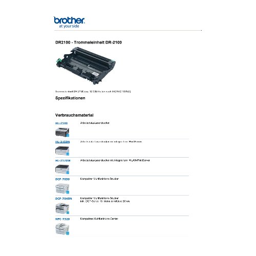 Jetzt anmeldenProduktinformationen "Brother DR2100 - Original - Trommeleinheit - für Brother DCP-7030, 7040, 7045, HL-2140, 2150, 2170, MFC-7320, 7440, 7840"