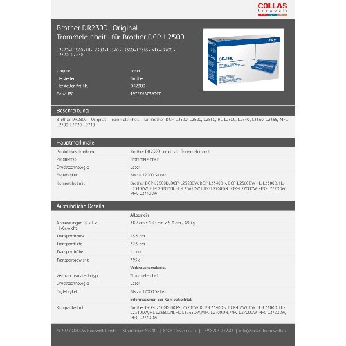 Jetzt anmeldenProduktinformationen "Brother DR2300 - Original - Trommeleinheit - für Brother DCP-L2500"