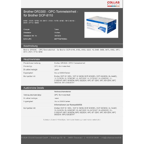 Jetzt anmeldenProduktinformationen "Brother DR3300 - OPC-Tommeleinheit - für Brother DCP-8110"