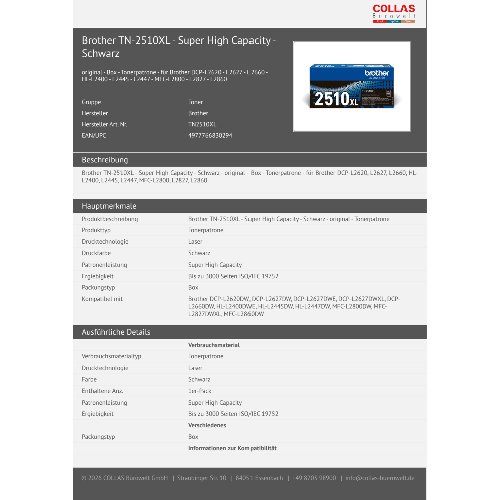Jetzt anmeldenProduktinformationen "Brother TN-2510XL - Super High Capacity - Schwarz"