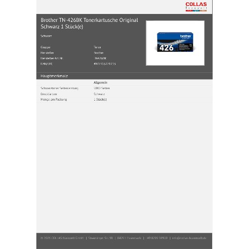 Jetzt anmeldenProduktinformationen "Brother TN-426 BK Toner schwarz - Original - Tonereinheit"