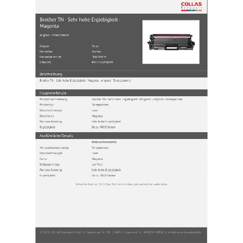 Jetzt anmeldenProduktinformationen "Brother TN - Sehr hohe Ergiebigkeit - Magenta"