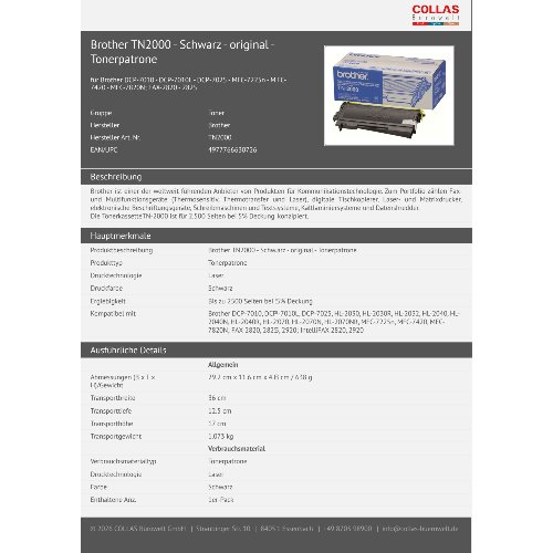 Jetzt anmeldenProduktinformationen "Brother TN2000 - Schwarz - original - Tonerpatrone"