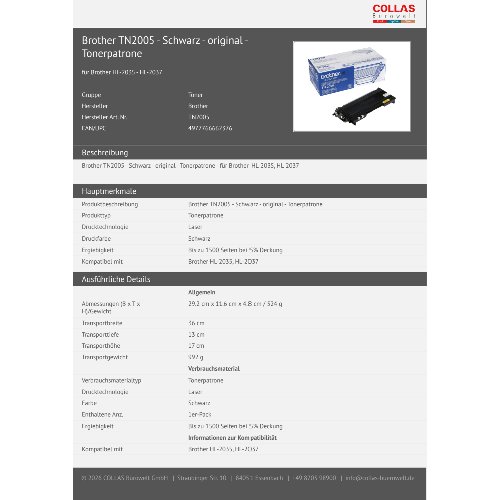 Jetzt anmeldenProduktinformationen "Brother TN2005 - Schwarz - original - Tonerpatrone"