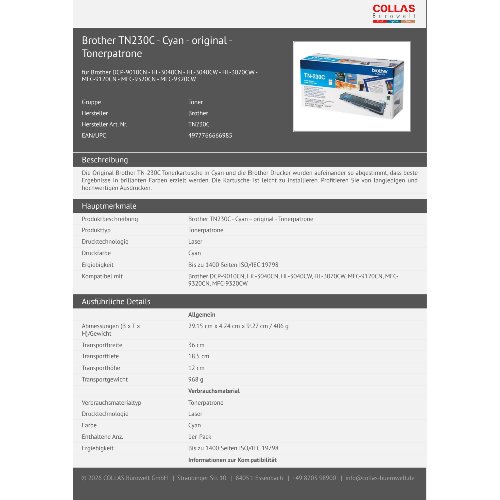 Jetzt anmeldenProduktinformationen "Brother TN230C - Cyan - original - Tonerpatrone"