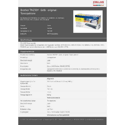 Jetzt anmeldenProduktinformationen "Brother TN230Y - Gelb - original - Tonerpatrone"