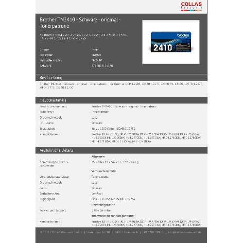 Jetzt anmeldenProduktinformationen "Brother TN2410 - Schwarz - original - Tonerpatrone"