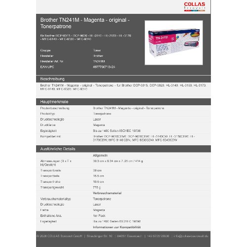 Jetzt anmeldenProduktinformationen "Brother TN241M - Magenta - original - Tonerpatrone"