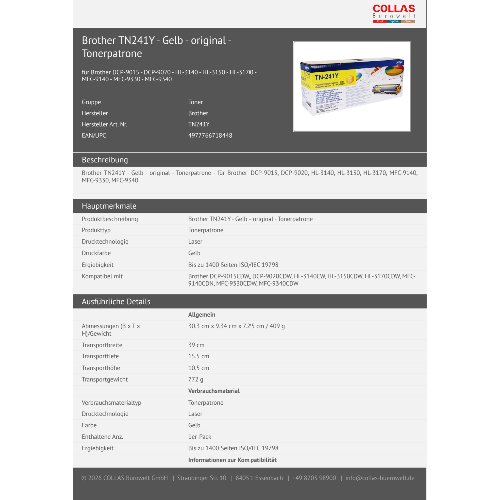 Jetzt anmeldenProduktinformationen "Brother TN241Y - Gelb - original - Tonerpatrone"