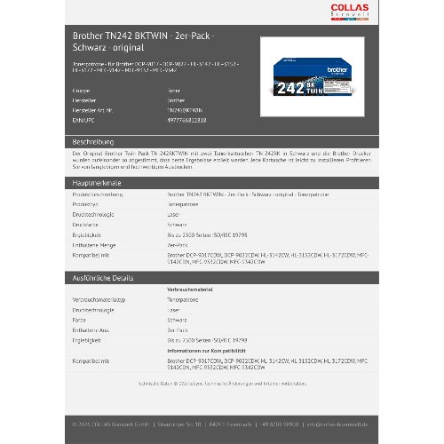 Jetzt anmeldenProduktinformationen "Brother TN242 BKTWIN - 2er-Pack - Schwarz - original"