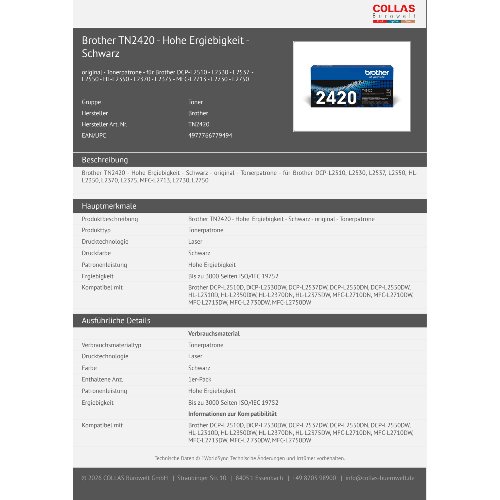 Jetzt anmeldenProduktinformationen "Brother TN2420 - Hohe Ergiebigkeit - Schwarz"