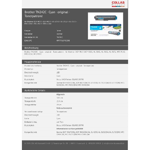 Jetzt anmeldenProduktinformationen "Brother TN242C - Cyan - original - Tonerpatrone"