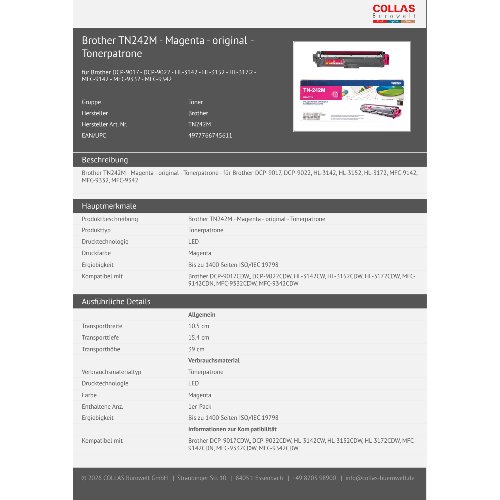 Jetzt anmeldenProduktinformationen "Brother TN242M - Magenta - original - Tonerpatrone"