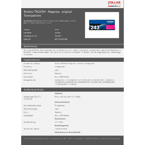 Jetzt anmeldenProduktinformationen "Brother TN243M - Magenta - original - Tonerpatrone"