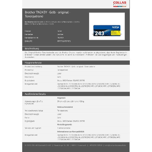 Jetzt anmeldenProduktinformationen "Brother TN243Y - Gelb - original - Tonerpatrone"