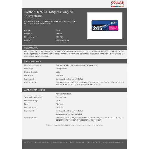 Jetzt anmeldenProduktinformationen "Brother TN245M - Magenta - original - Tonerpatrone"