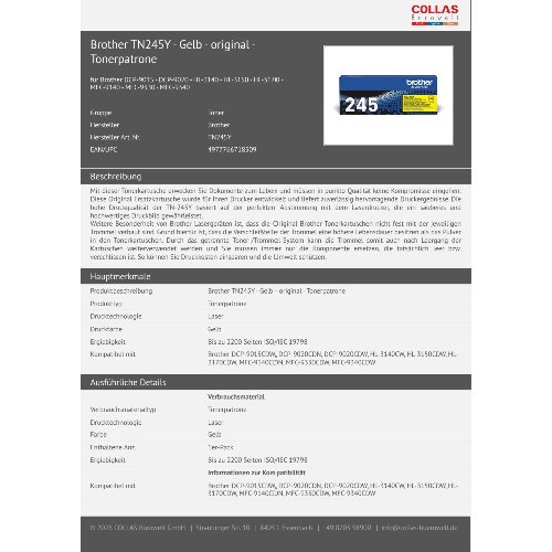Jetzt anmeldenProduktinformationen "Brother TN245Y - Gelb - original - Tonerpatrone"