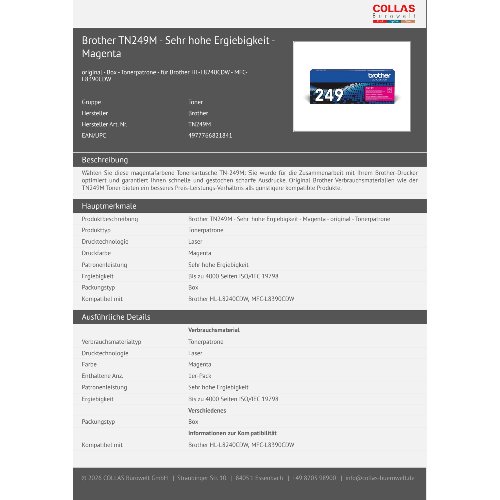 Jetzt anmeldenProduktinformationen "Brother TN249M - Sehr hohe Ergiebigkeit - Magenta"