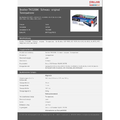 Jetzt anmeldenProduktinformationen "Brother TN320BK - Schwarz - original - Tonerpatrone"