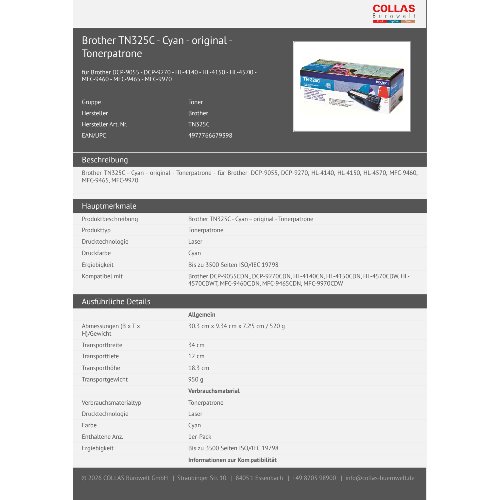 Jetzt anmeldenProduktinformationen "Brother TN325C - Cyan - original - Tonerpatrone"
