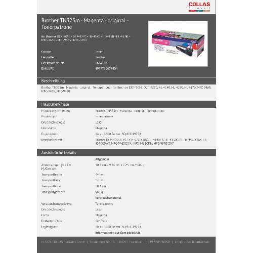 Jetzt anmeldenProduktinformationen "Brother TN325m - Magenta - original - Tonerpatrone"