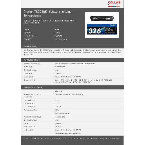 Jetzt anmeldenProduktinformationen "Brother TN326BK - Schwarz - original - Tonerpatrone"