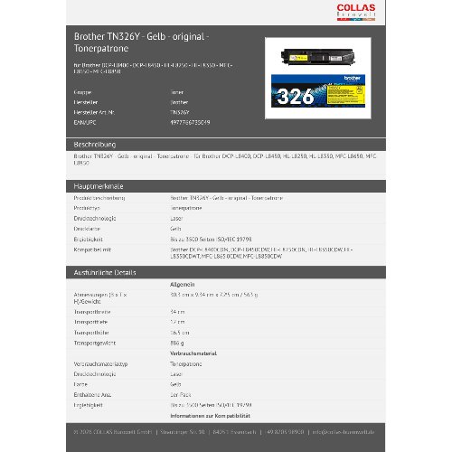 Jetzt anmeldenProduktinformationen "Brother TN326Y - Gelb - original - Tonerpatrone"