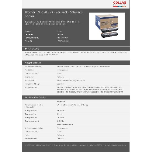 Jetzt anmeldenProduktinformationen "Brother TN3380 2PK - 2er-Pack - Schwarz - original"