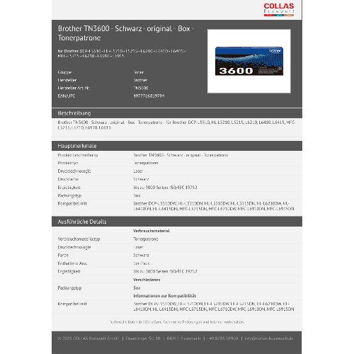 Jetzt anmeldenProduktinformationen "Brother TN3600 - Schwarz - original - Box - Tonerpatrone"