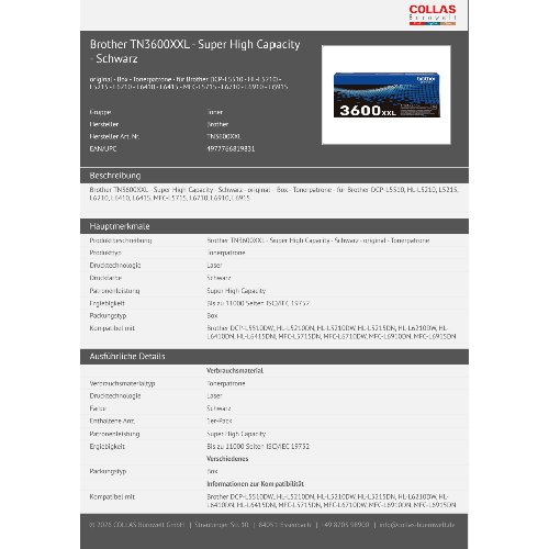 Jetzt anmeldenProduktinformationen "Brother TN3600XXL - Super High Capacity - Schwarz"