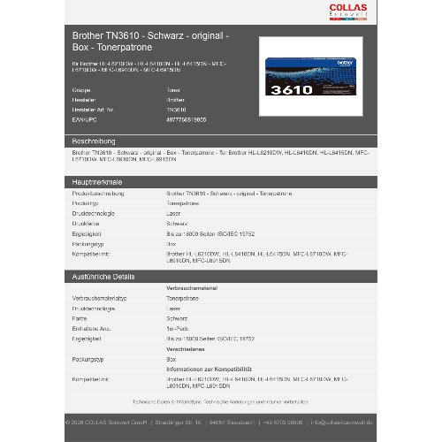 Jetzt anmeldenProduktinformationen "Brother TN3610 - Schwarz - original - Box - Tonerpatrone"