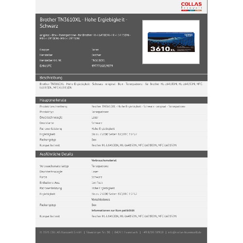 Jetzt anmeldenProduktinformationen "Brother TN3610XL - Hohe Ergiebigkeit - Schwarz"