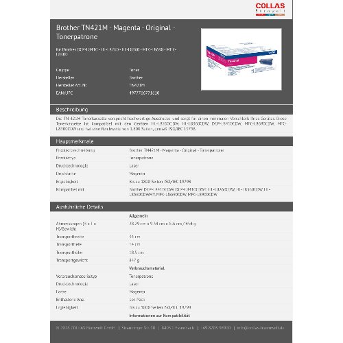 Jetzt anmeldenProduktinformationen "Brother TN421M - Magenta - Original - Tonerpatrone"