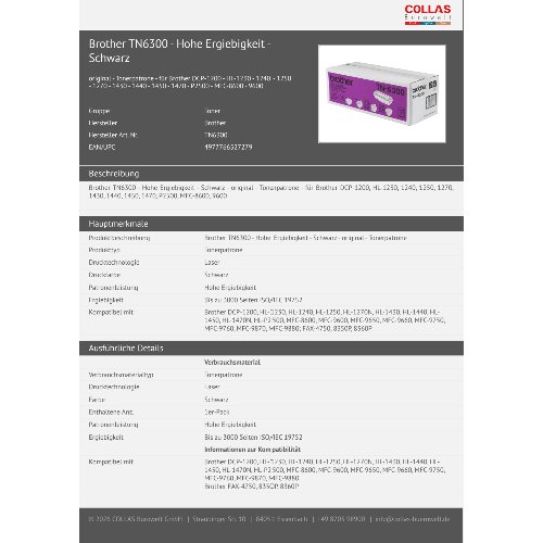Jetzt anmeldenProduktinformationen "Brother TN6300 - Hohe Ergiebigkeit - Schwarz"