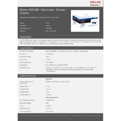 Jetzt anmeldenProduktinformationen "Brother TN910BK - Ultra Jumbo - Schwarz - Original"