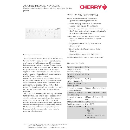 Jetzt anmeldenProduktinformationen "Cherry Active Key AK-C8112 - Tastatur - medizinisch"