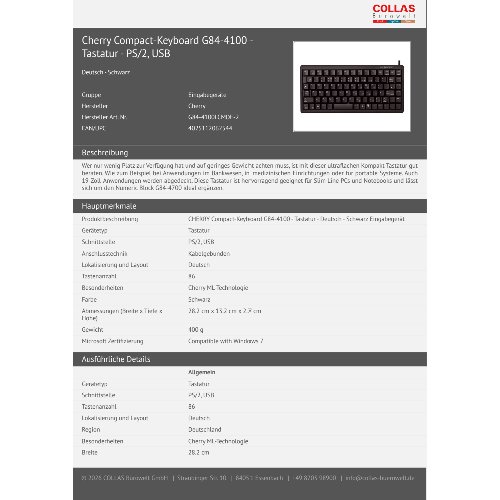 Jetzt anmeldenProduktinformationen "Cherry Compact-Keyboard G84-4100 - Tastatur - PS/2, USB"