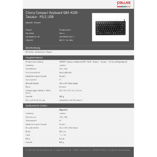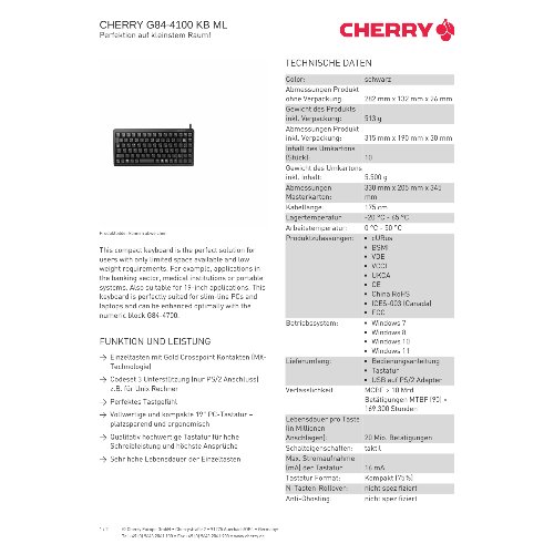 Jetzt anmeldenProduktinformationen "Cherry Compact-Keyboard G84-4100 - Tastatur - PS/2, USB"