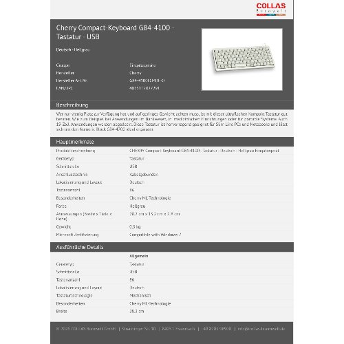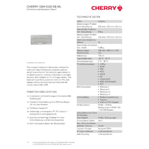 Jetzt anmeldenProduktinformationen "Cherry Compact-Keyboard G84-4100 - Tastatur - USB"