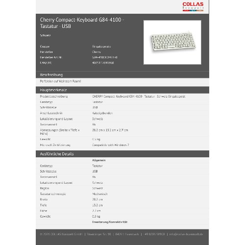Jetzt anmeldenProduktinformationen "Cherry Compact-Keyboard G84-4100 - Tastatur - USB"