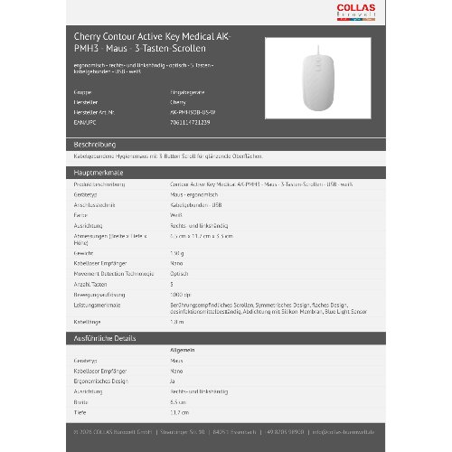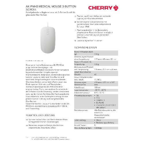 Jetzt anmeldenProduktinformationen "Cherry Contour Active Key Medical AK-PMH3 - Maus - 3-Tasten-Scrollen"