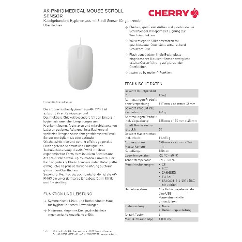 Jetzt anmeldenProduktinformationen "Cherry Contour Active Key Medical AK-PMH3 - Maus - Scroll-Sensor"