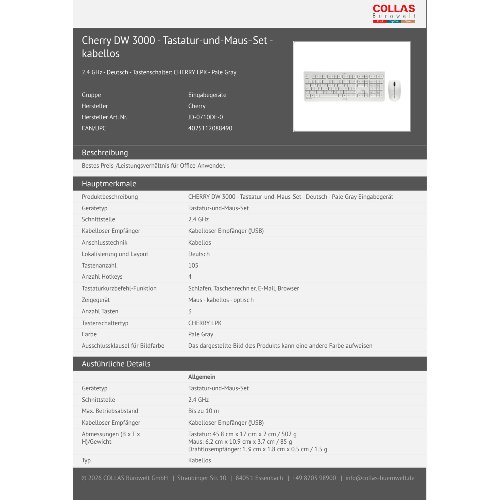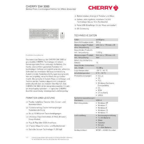Jetzt anmeldenProduktinformationen "Cherry DW 3000 - Tastatur-und-Maus-Set - kabellos"