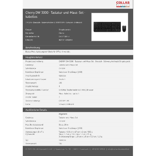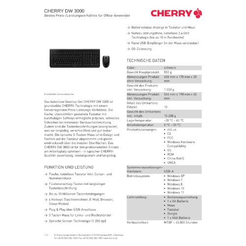 Jetzt anmeldenProduktinformationen "Cherry DW 3000 - Tastatur-und-Maus-Set - kabellos"