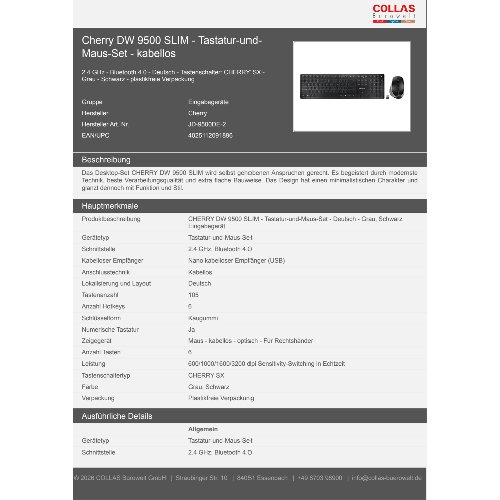 Jetzt anmeldenProduktinformationen "Cherry DW 9500 SLIM - Tastatur-und-Maus-Set - kabellos"