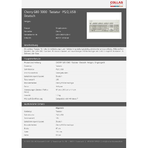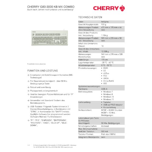 Jetzt anmeldenProduktinformationen "Cherry G80-3000 - Tastatur - PS/2, USB - Deutsch"