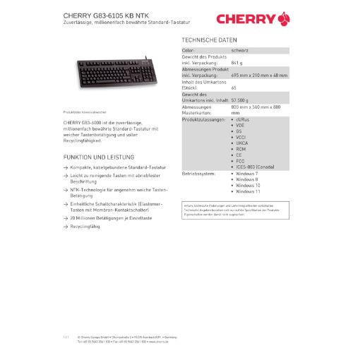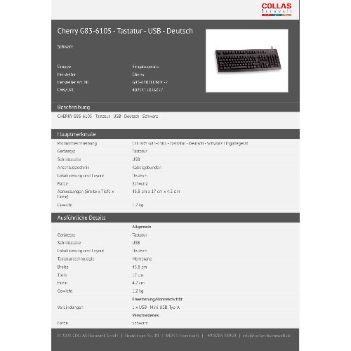 Jetzt anmeldenProduktinformationen "Cherry G83-6105 - Tastatur - USB - Deutsch"