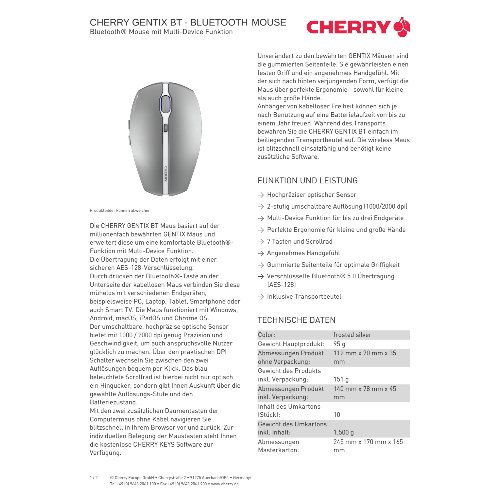 Jetzt anmeldenProduktinformationen "Cherry GENTIX BT - Maus - optisch - 7 Tasten"